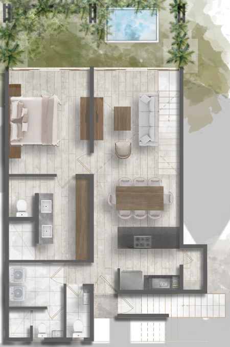 Proyecto de 125 departamentos distribuidos en 25 edificios de 5 departamentos cada uno. Ubicados en Temozón Norte, cerca de servicios como hospitales, universidades, plazas comerciales, etc.
